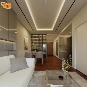 Với diện tích 75m², bài toán đặt ra là tối ưu công năng sử dụng mà vẫn đảm bảo sự thông thoáng. Đội ngũ thiết kế của PDF INTERIOR đã lựa chọn phong cách hiện đại, khai thác triệt để ưu điểm của không gian mởánh sáng tự nhiên, đồng thời tiết chế các chi tiết trang trí rườm rà để tạo cảm giác nhẹ nhàng và rộng rãi.