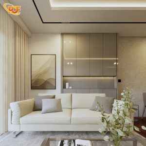 Với diện tích 75m², bài toán đặt ra là tối ưu công năng sử dụng mà vẫn đảm bảo sự thông thoáng. Đội ngũ thiết kế của PDF INTERIOR đã lựa chọn phong cách hiện đại, khai thác triệt để ưu điểm của không gian mở và ánh sáng tự nhiên, đồng thời tiết chế các chi tiết trang trí rườm rà để tạo cảm giác nhẹ nhàng và rộng rãi.
